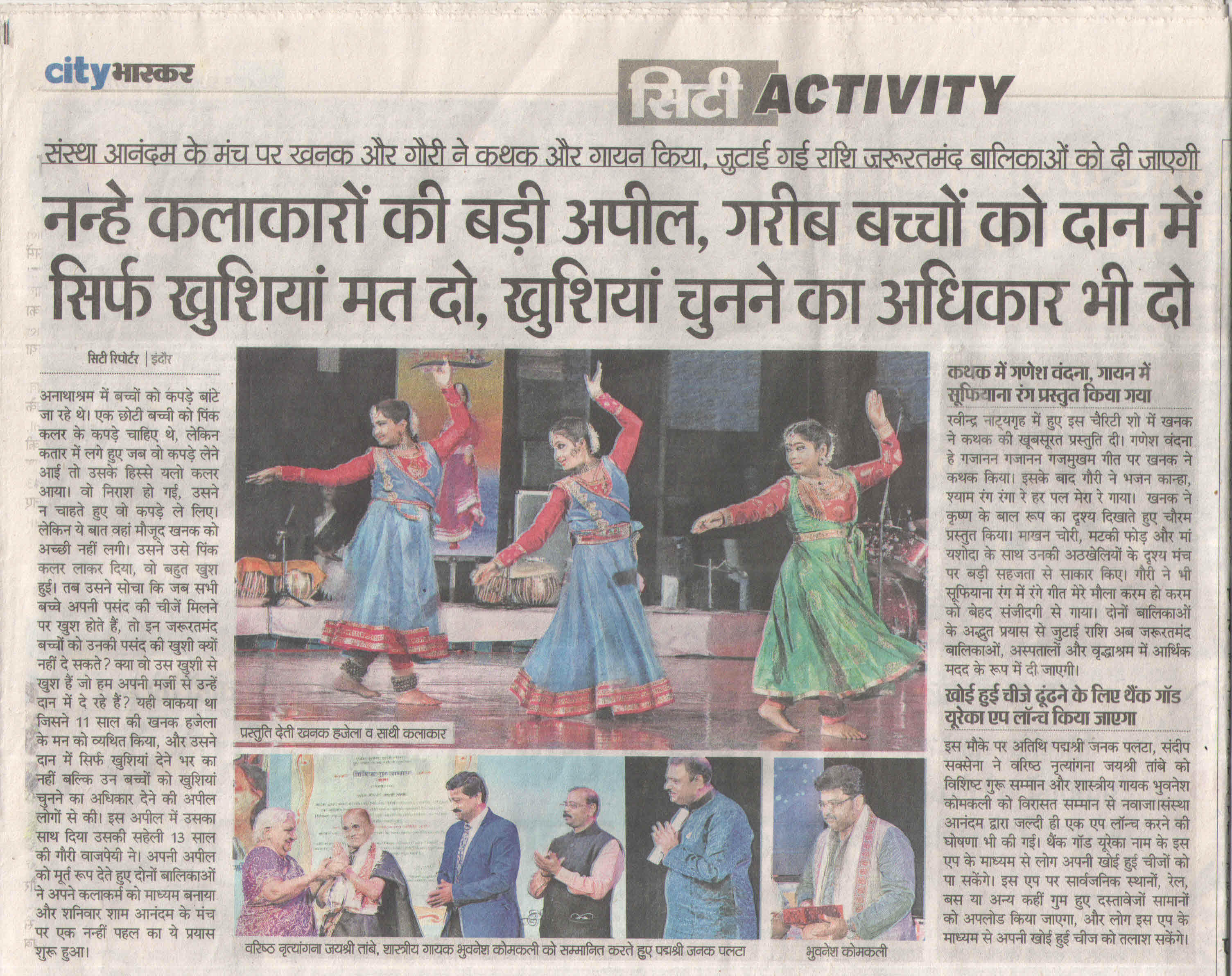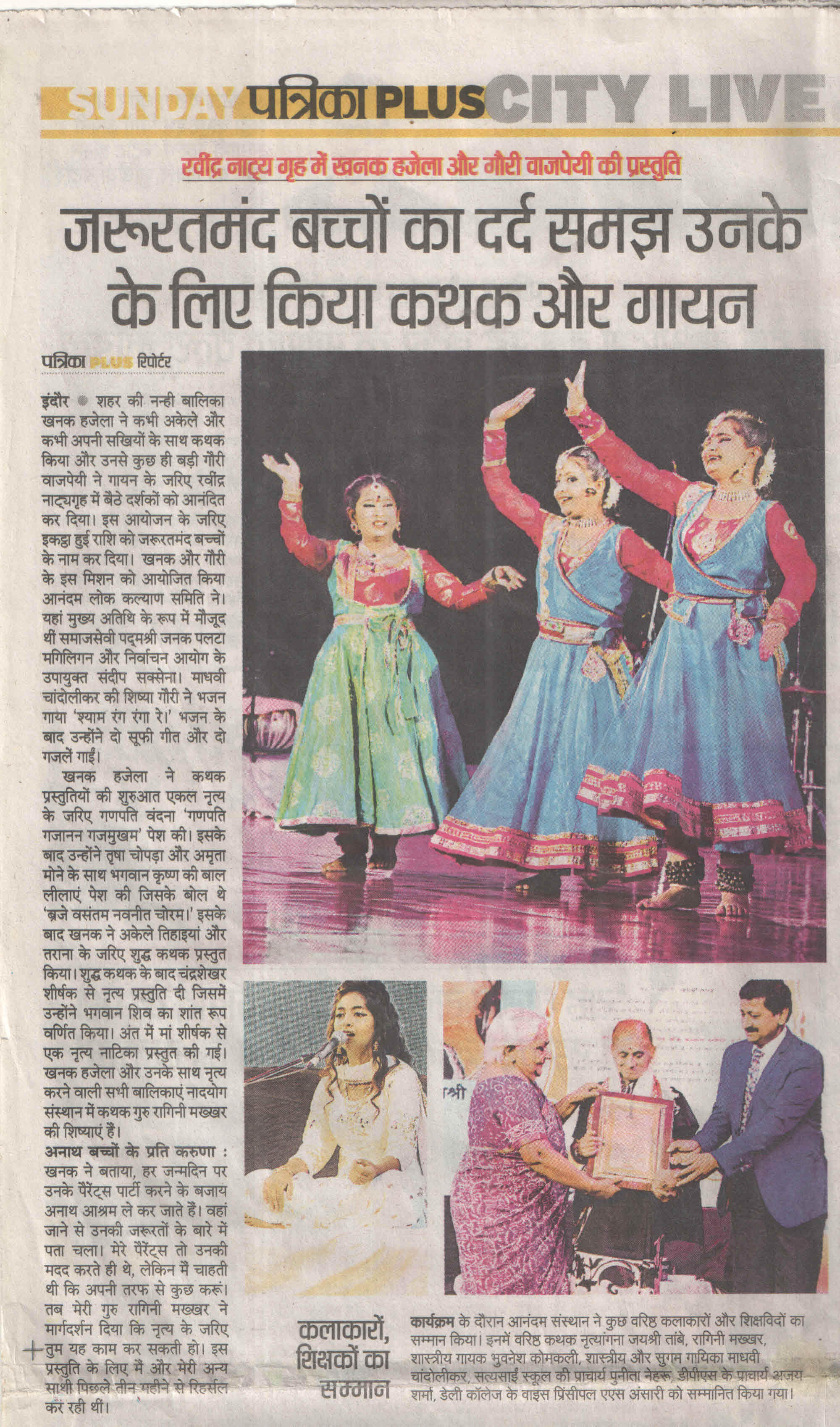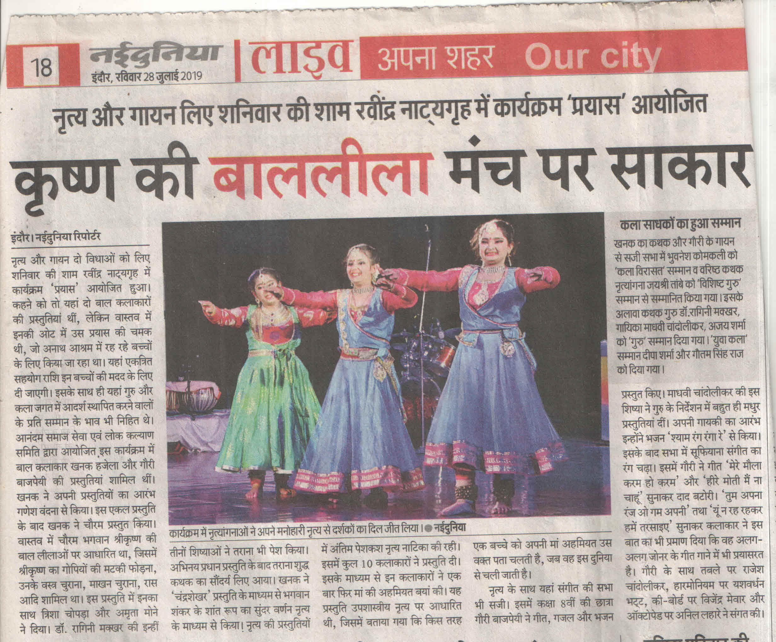 Marching towards the mission , Khanak Hajela a delightful socio economic Kalakar ,student of Delhi Public School - Indore and Naadyog with her Guru Maa Dr. Ragini Makkhar presents an evening "Prayas.... Ek Nanhi Pehal" on 23rd May 2020. An evening of maiden performance of Kathak by Khanak with the blessings of her Guru Maa Dr. Ragini Makkhar, who is an alumni of Lucknow Gharana and has privilege to be trained by world renowned Kathak exponent Smt. Sitara Devi. Dr. Ragini Makkhar continued the learning under the prudent guidance of great Kathak Guru Smt. Shama Bhate and Tabla maestro Padam Shri Pt. Suresh Talwalkar.